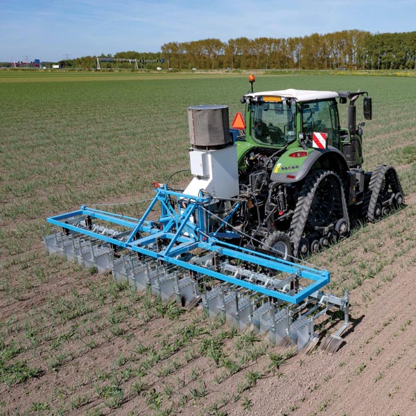 Utilisable sur les planches, les billons et à plat. Peut-être utilisé avec un système. d’irrigation goutte à goutte. Puissance requise du tracteur comprise entre 120 et 170 ch. Vitesse de conduite de 2 à 6 km/h. Sans produits chimiques. Autoguidage par caméra(s) en option. Autoguidage par GPS RTK en option.