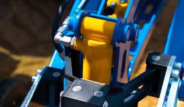 Mise sous pression hydraulique du parallélogramme pour une meilleure précision et pénétration du sol. Allègement hydraulique du parallélogramme pour une utilisation dans les sols à faible portance.