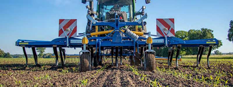 Le système d’ajustement breveté assure une adaptation rapide en continu des outils de binage au plus près du rang de culture – même durant le travail au champ.